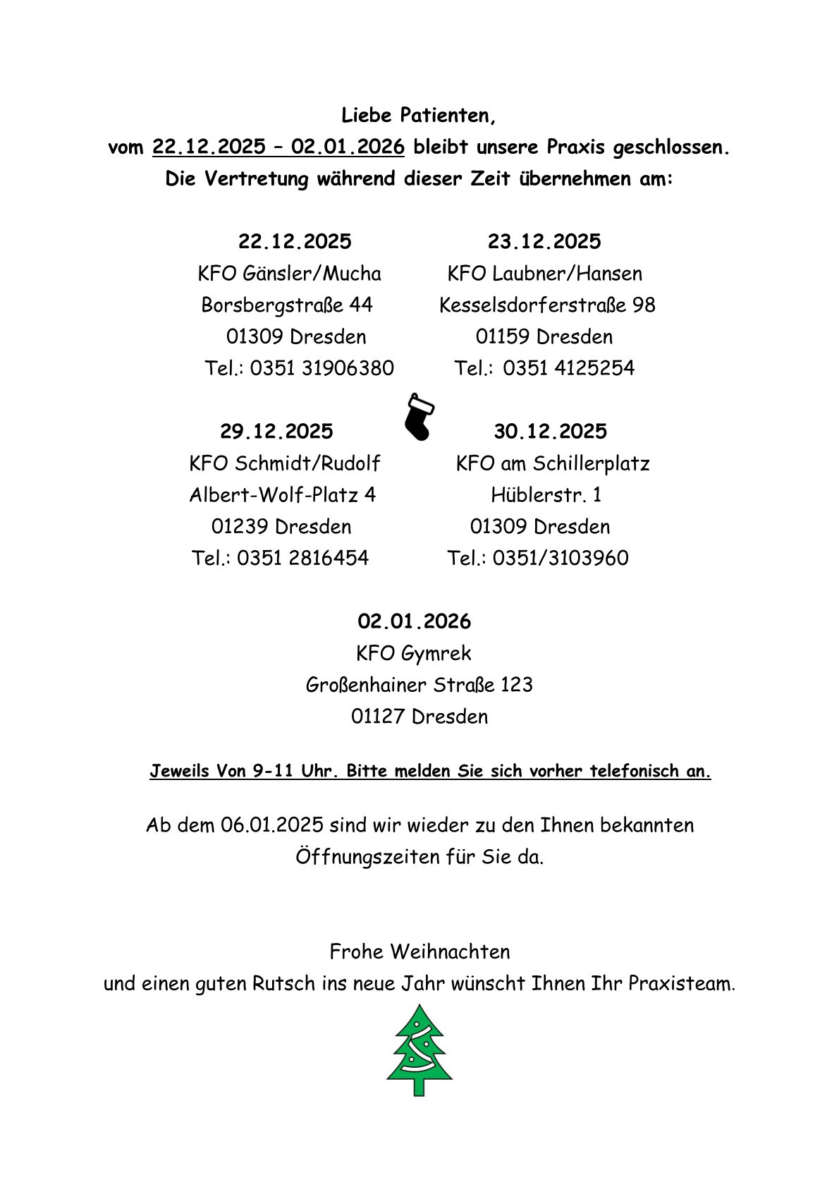 Praxisurlaub vom 22.12.25 - 02.01.26